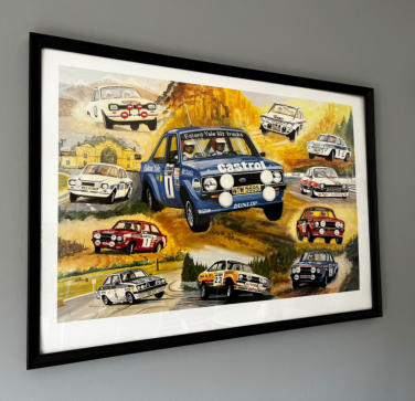 A must have for all Ford Escort and rally enthusiasts, this high quality print of a painting by motor racing artist MIKE DAVISON depicts just some of the glorious “Works Ford Escorts” from the debut 1968 SAN REMO to the swansong 1979 RAC Rally. Actual Print Size: 630 x 420mm All prints come with a full legend of cars depicted. Our prints and other products make an ideal gift for any motoring enthusiast. Frame not included.